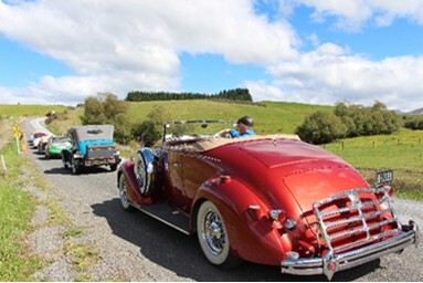 Monday dawned beautifully, and our Dodgy Packard departed Heritage Hanmer Springs Hotel just after 9 am. We’d only managed a few metres before Milton asked Leyton to stop the car, very, very gently. Milton hopped out then quickly got back in. Seeing our confused faces, he held up his phone. “On the roof,” he explained. Chuckling, we continued to the town’s only petrol station, for the first of the day’s club gathering at the pumps.